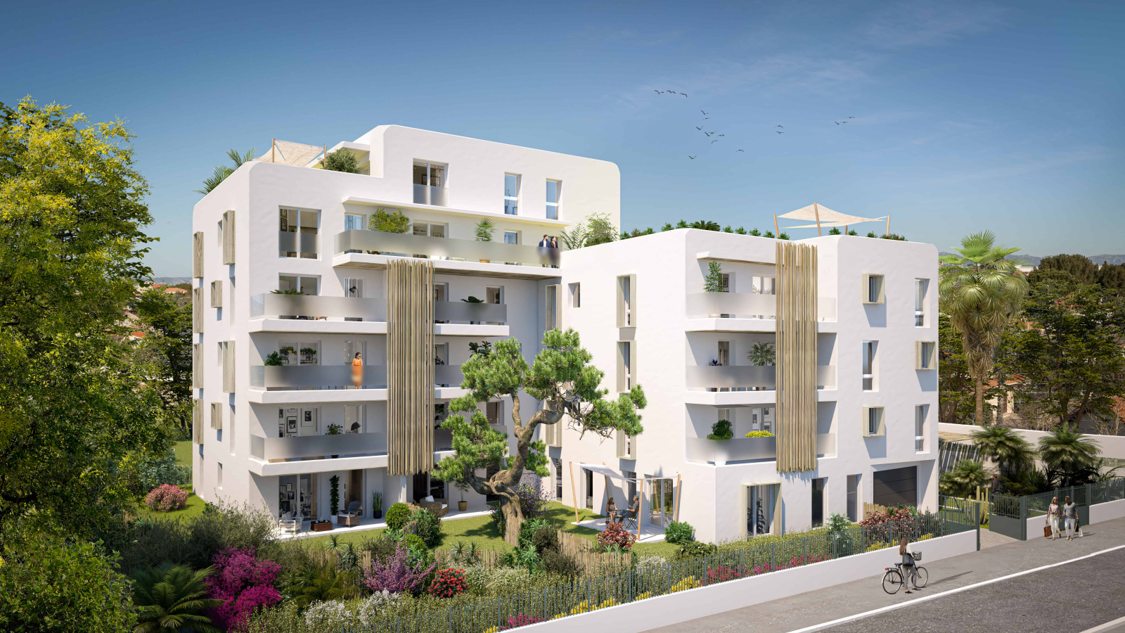 De belles jardinières plantées avec arrosage automatique préserveront votre intimité sur la terrasse et ajoutent au charme de ce lieu unique où chaque instant est une promesse d'évasion. De plus, vous disposez d'un box et d'un double box pour un stationnement sécurisé et pratique.